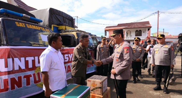 Sebagai bentuk kehadiran negara, Kapolri juga menyerahkan secara simbolik delapan truk bantuan ‘Polri untuk Masyarakat’ yang berisi bahan makanan, pakaian dan kebutuhan sehari-hari kepada Bupati Tapanuli Tengah, Masinton Pasaribu. Bantuan tersebut langsung didistribusikan ke posko pengungsian warga terdampak banjir di GOR Pandan, Tapanuli Tengah.