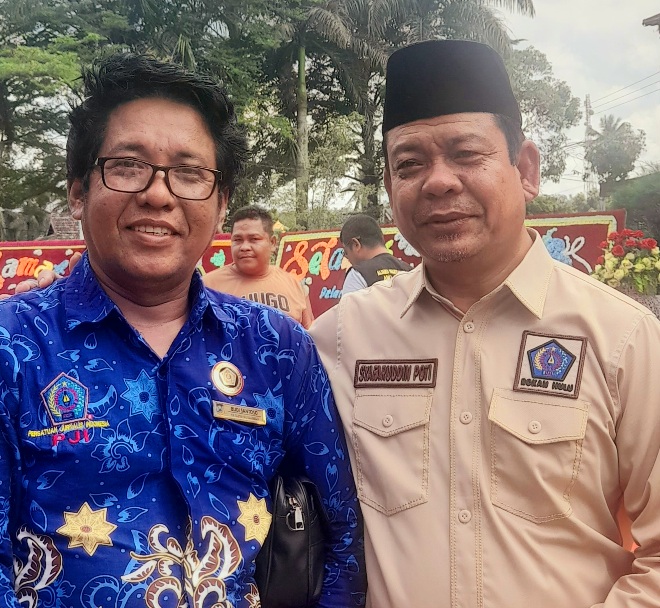 Budi Santoso, Anggota DPP PJI Ketua Bidang SDM & Komunikasi (kiri) bareng Wakil Bupati Rohul, H. Syafaruddin Poti (ist/red)
