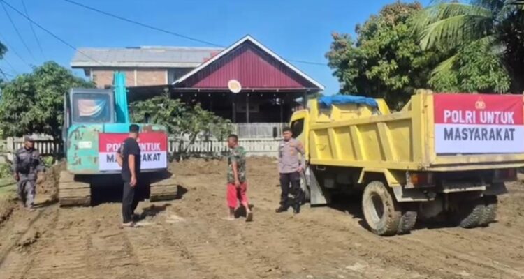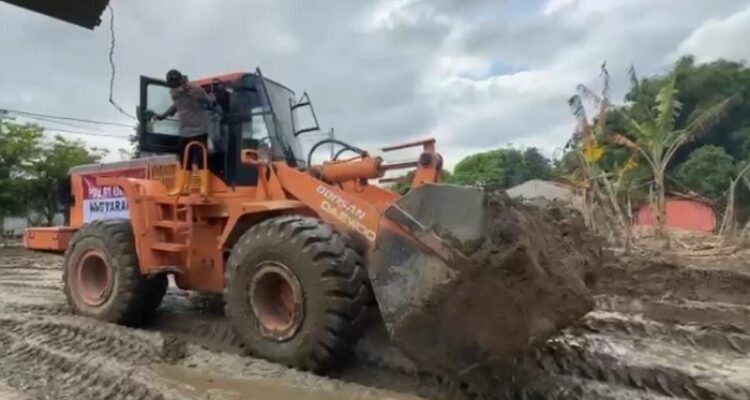 GSN.com – Personel Polres Pidie bersama warga masyarakat melaksanakan kegiatan pembersihan lumpur